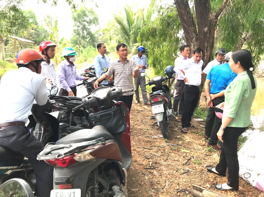 (Đoàn đi khảo sát thực tế tại công trình đoạn KT1 đến KT5, xã Đông Thạnh)