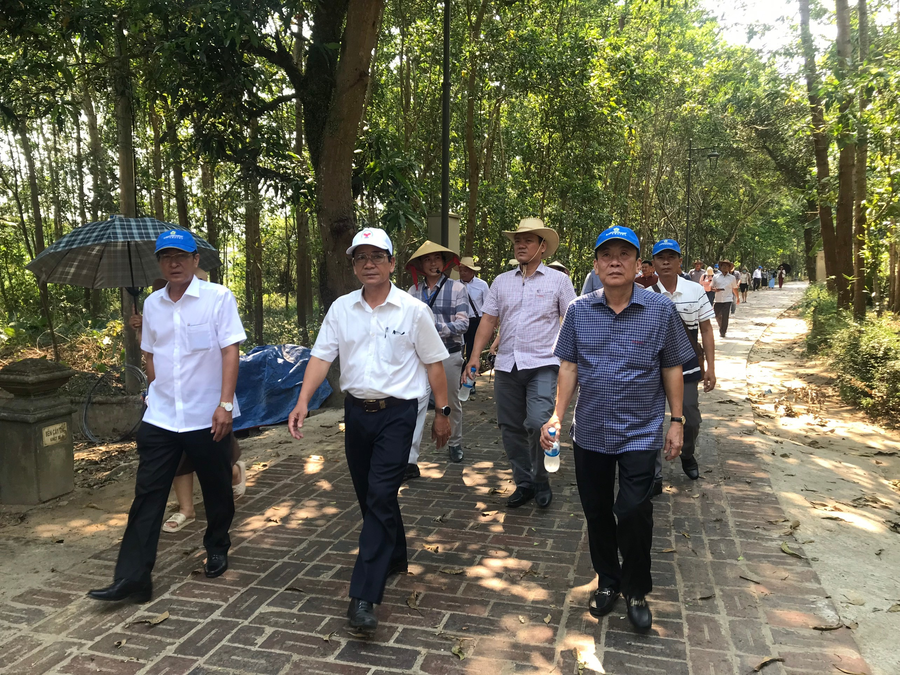 (Đại diện Thường trực HĐND huyện Phong Điền cùng Đoàn công tác huyện An Minh thăm quan Làng cổ Phước Tích)