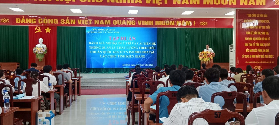 Nhằm nâng cao nghiệp vụ áp dụng, duy trì, cải tiến và đánh giá Hệ thống quản lý chất lượng theo Tiêu chuẩn quốc gia TCVN ISO 9001:2015 tại các cơ quan hành chính nhà nước, góp phần nâng cao hiệu quả công tác cải cách hành chính. Ngày 25/9/2023, Sở Khoa học và Công nghệ tỉnh Kiên Giang phối hợp với Ủy ban nhân dân huyện An Minh tổ chức Hội nghị tập huấn cập nhật, nâng cao nhận thức và đánh giá nội bộ Hệ thống quản lý chất lượng theo tiêu chuẩn TCVN 9001:2015 cho lãnh đạo, cán bộ, công chức của các cơ quan ban ngành huyện và các xã, thị trấn.