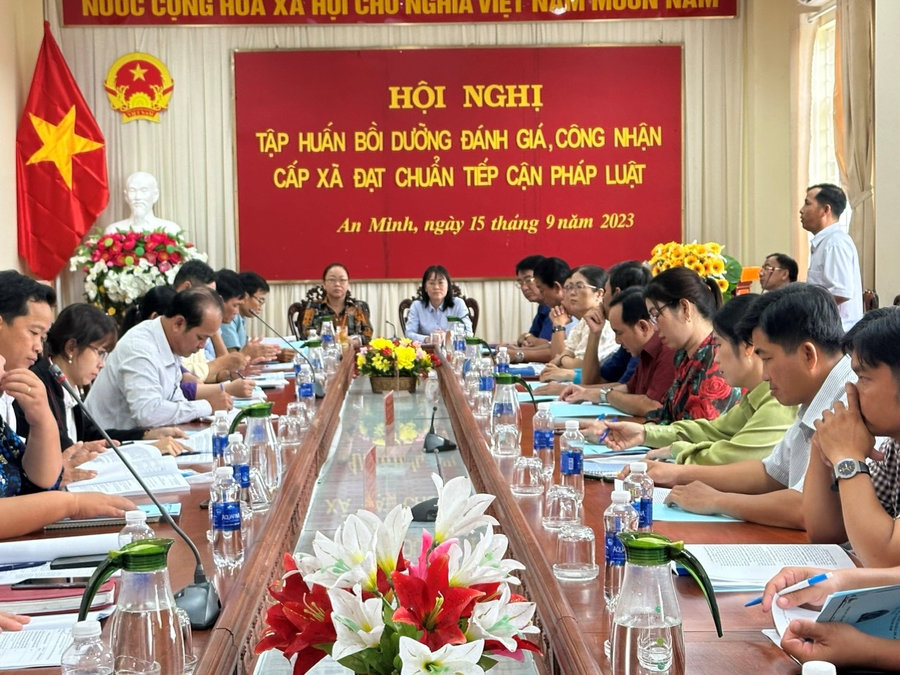 Sáng ngày 15/9/2023 Ủy ban nhân dân huyện An Minh phối hợp với Sở Tư pháp tỉnh Kiên Giang tổ chức Hội nghị tập huấn hướng dẫn đánh giá công nhận cấp huyện, cấp xã đạt chuẩn tiếp cận pháp luật.