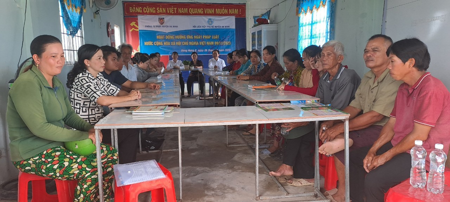 ảnh: Hội LHPNVN huyện phối hợp với Phòng Tư pháp tổ chức tyên truyền pháp luật tại xã Đông Hưng B