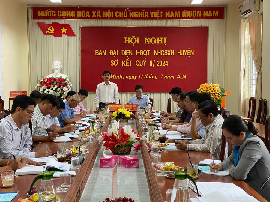 Chiều ngày 11/7/2024 Ban Đại diện Hội đồng quản trị Ngân hàng Chính sách xã hội (NHCSXH) huyện An Minh sơ kết quý II năm 2024 và phương hướng nhiệm vụ quý III năm 2024. Ông Lê ngọc Tùng, Ủy viên Ban Thường vụ huyện ủy, Phó Chủ tịch UBND huyện - Trưởng ban Đại diện Hội đồng quản trị NHCSXH huyện An Minh chủ trì Hội nghị, cùng dự và chỉ đạo hội nghị có đồng chí Đoàn Công Thiệt Giám đốc Chi nhánh NHCSXH tỉnh Kiên Giang; Thủ trưởng các cơ quan, đơn vị là thành viên Ban Đại diện huyện, Chủ tịch UBND các xã, thị trấn, Ban Giám đốc NHCSXH huyện.