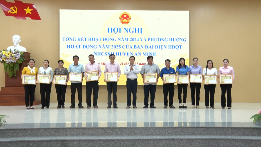 Dịp này, Ban đại diện Ngân hàng CSXH tỉnh Kiên Giang 02 cá nhân và Chủ tịch UBND huyện An Minh đã tặng giấy khen cho 14 tập thể và 46 cá nhân hoàn thành xuất sắc nhiệm vụ công tác tín dụng chính sách năm 2024./.