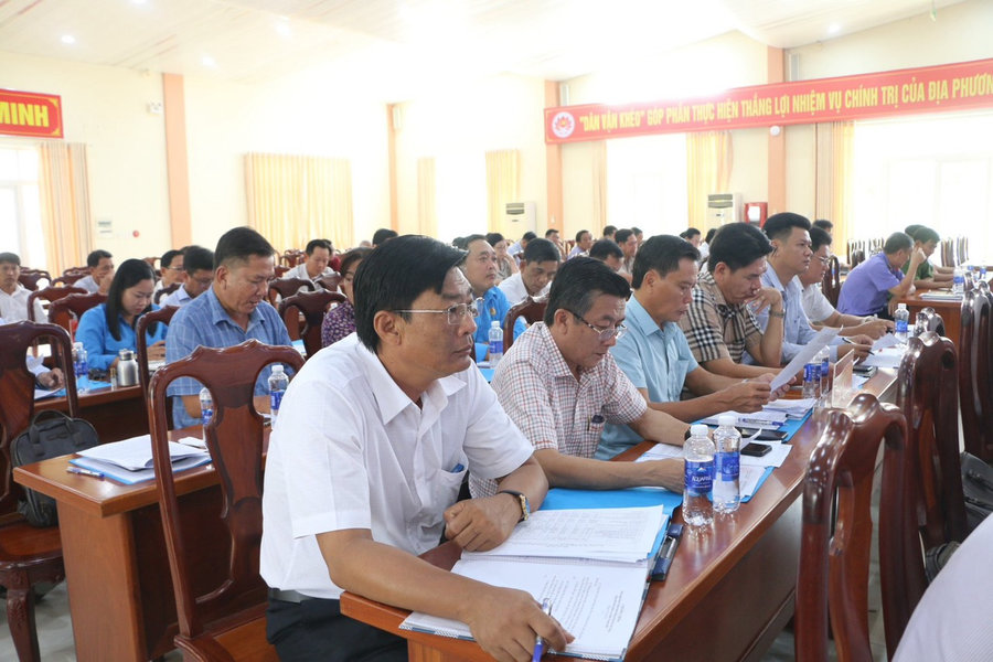 Các đại biểu dự Hội nghị Ban Chấp hành Đảng bộ huyện An Minh (mở rộng), tổng kết thực hiện nhiệm vụ năm 2023.