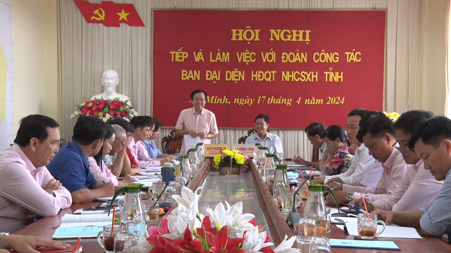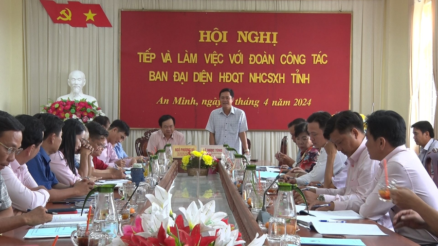 Buổi chiều cùng ngày, tại phòng họp UBND huyện An Minh, Đoàn giám sát tiếp tục làm việc với Ban đại diện Hội đồng quản trị (HĐQT) Ngân hàng Chính sách xã hội (NHCSXH) và các thành viên BĐD HĐQT huyện An Minh.
