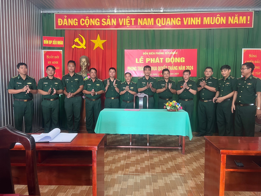 Ảnh: CBCS Đồn Biên phòng Xẻo Nhàu tại lễ Phát động phong trào thi quyết thắng năm 2024