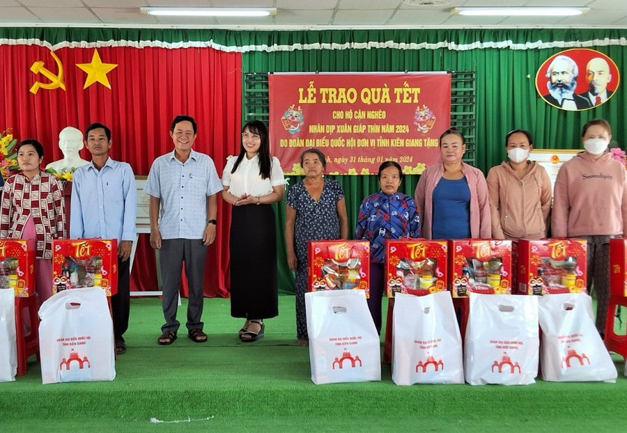 Lãnh đạo huyện An Minh tặng quà Tết Nguyên đán Giáp Thìn 2024 các hộ nghèo trên địa bàn huyện.