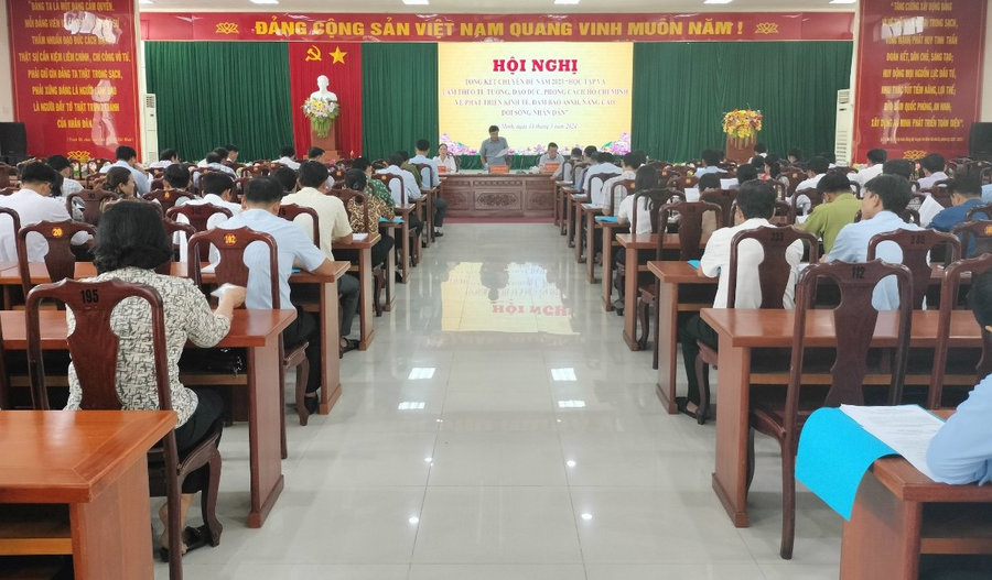 Phát biểu tại Hội nghị, đồng chí Lâm Văn Triều, Phó Bí thư Thường trực Huyện ủy, Chủ tịch Hội đồng nhân dân huyện ghi nhận và biểu dương những kết quả đã đạt được trong năm qua. Đồng thời, đề nghị các chi, đảng ủy, các cơ quan, đơn vị, địa phương tiếp tục quán triệt sâu sắc nội dung Kết luận số 01-KL/TW của Bộ Chính trị; tập trung triển khai, thực hiện Chuyên đề năm 2024 “Cán bộ, đảng viên tiếp tục thực hiện tốt trách nhiệm nêu gương; khắc phục tình trạng sợ trách nhiệm, không dám làm"; đưa nội dung học tập tư tưởng, đạo đức, phong cách Hồ Chí Minh trở thành một trong những nội dung chính trong sinh hoạt thường xuyên của chi bộ và chi, tổ hội các đoàn thể chính trị - xã hội. Tăng cường công tác kiểm tra, giám sát, phát hiện, biểu dương, nhân rộng các điển hình tiên tiến về học tập và làm theo tư tưởng, đạo đức, phong cách Hồ Chí Minh; khắc phục, ngăn ngừa bệnh hình thức, thành tích, nói không đi đôi với làm, thiếu trung thực.