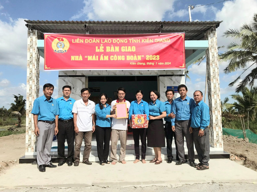Ngày 24-01-2024, Đoàn công tác do bà Trang Thị Bích Ngọc, Phó chủ tịch Liên đoàn Lao động tỉnh Kiên Giang Làm trưởng đoàn đã phối hợp với Liên đoàn Lao động huyện An Minh tổ chức thăm và trao tặng 2 căn nhà “Mái ấm Công đoàn” cho 02 đoàn viên Trần Thanh Vân CĐCS Trung Tâm giáo dục nghề nghiệp - Giáo dục thường xuyên huyện và đoàn viên Trần Văn nhớ CĐCS xã Đông Hưng có hoàn cảnh khó khăn về nhà ở được các cấp công đoàn xem xét hỗ trợ với số tiền 90 triệu đồng. Trong đó, đoàn viên Trần Thanh Vân được hỗ trợ 50 triệu đồng từ nguồn kinh phí của Cụm thi đua 12 Liên đoàn Lao động tỉnh khu vực Đồng bằng sông Cửu Long; Đoàn viên Trần Văn Nhớ được hỗ trợ 40 triệu đồng từ Quỹ mái ấm công đoàn Kiên Giang hỗ trợ.