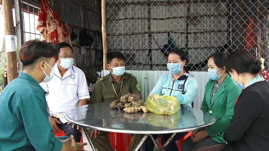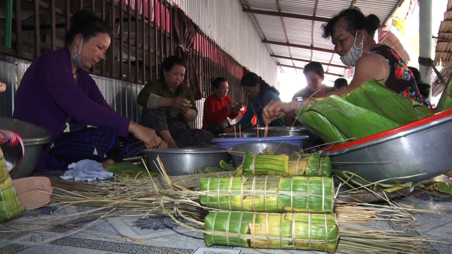 Có mặt tại nhà của cô Cái Thị Phúc, ngụ ấp Kim Qui A1, xã Vân Khánh Tây, ngay từ sáng sớm không khí gói bánh tại đây đã vô cùng rộn ràng và khẩn trương như thể nhà có đám tiệc. Không ai bảo ai, khi nghe Hội Phụ nữ, Ủy ban Mặt trận Tổ quốc Việt Nam của xã vận động, rất đông bà con trong ấp tụ họp đến nhà của cô Cái Thị Phúc để hỗ trợ gói bánh. Mỗi người một việc người lau lá chuối, lá dừa, chuẩn bị nếp, người nhóm lửa nấu bánh,… nhưng trên tất cả ai cũng muốn làm ra những chiếc bánh thơm ngon để trao tặng lực lượng làm nhiệm vụ tại các chốt kiểm soát phòng, chống dịch bệnh Covid-19 trên địa bàn.