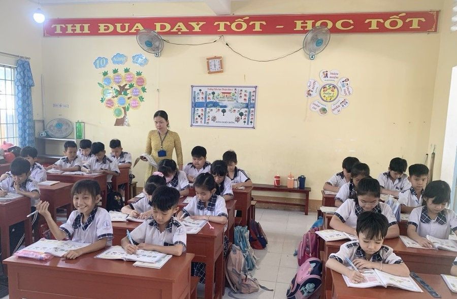 Một buổi lên lớp của cô và trò Trường tiểu học Thuận Hoà 1, huyện An Minh.